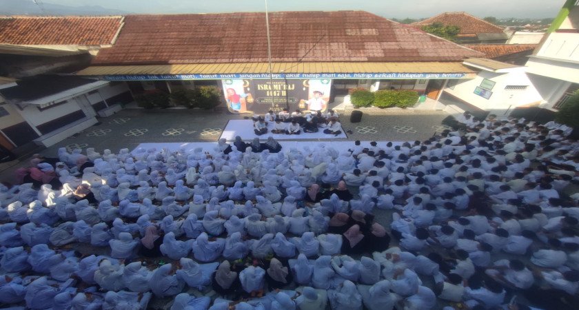 Ciomas 12 Februari 2026 – Dalam rangka memperingati hari besar Islam, MTs Darul Ihya menyelenggarakan peringatan Isra Mi’raj Nabi Muhammad SAW 1447 H dengan penuh khidmat. Kegiatan yang berlangsung di halaman madrasah ini dihadiri oleh seluruh siswa, dewan guru, serta staf kependidikan